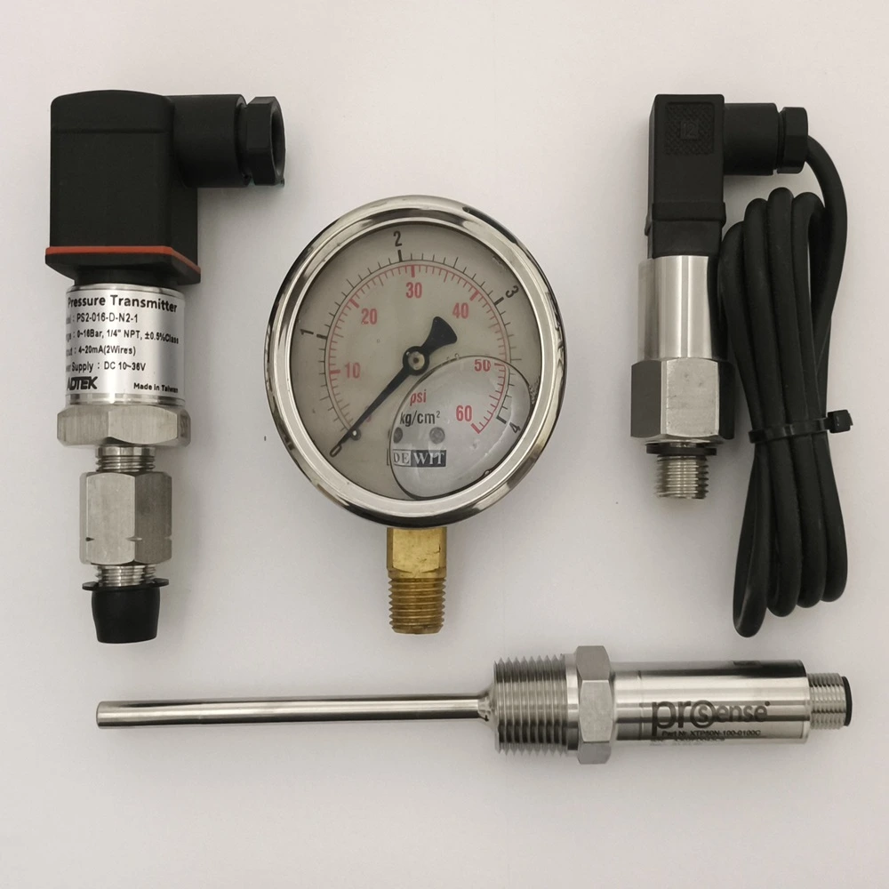 Presostatos, manómetros, transductores de presión, sensores de temperatura y caudalímetros. Lectura precisa para sistemas automatizados.